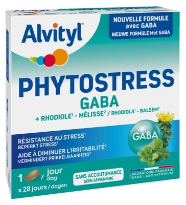 Alvityl Phytostress GABA 28 Tablets is a dietary supplement combining a neurotransmitter and two plants dedicated to stress.