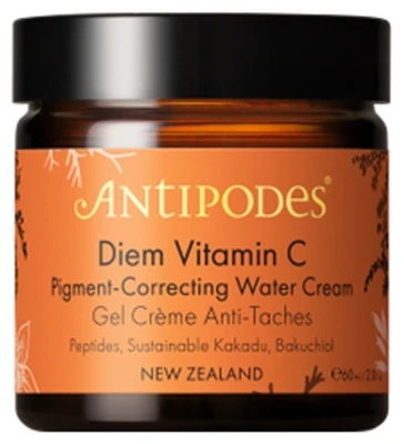 Antipodes Diem Vitamin C Pigment Correcting Water Cream 60ml is an ultra-light water-based day cream that reduces pigmentation and restores a radiant complexion to all skin types. It is particularly intended for dull skin marked by pigmentation spots.