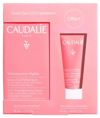 Caudalie Vinosource Hydra S.O.S Rehydrating Serum 30 ml + Hydrating Mask-Cream 15 ml Free is a duo S.O.S. Hydration, to rehydrate and soothe dry or dehydrated skin, including sensitive skin.
