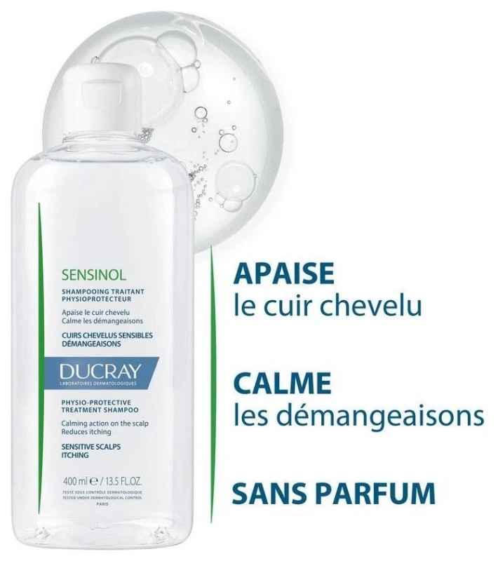 Ducray Sensinol Physio-protective Treatment Shampoo 400 ml is a shampoo with a gentle cleansing base that soothes the scalp and calms itching.