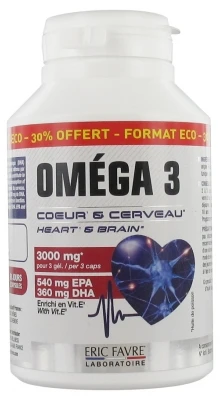 Eric Favre Omega 3 2 x 60 Capsules is a food supplement in form of capsule based of Vitamin E and fish oil which offers a cardioprotective effect and promotes the emotional balance, concentration and memory.