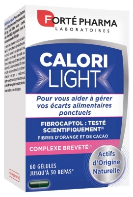 Forté Pharma CaloriLight 60 Capsules is a food supplement intended for greedy people wishing to indulge themselves while controlling their calories, for people who regularly eat too rich and unbalanced business meals, or large meals with family or friends.