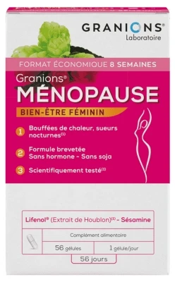 Granions Menopause 56 Capsules is a food supplement with unique formula to help to fight against hot flushes and night sweats.