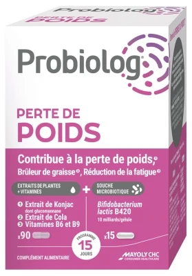 Mayoly Spindler Probiolog Weight Loss 105 Capsules is a food supplement that helps with weight loss, fat burning and reducing fatigue. It is divided into 2 different capsules.