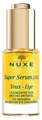 Nuxe Super Serum [10] Eyes 15 ml is an anti-aging concentrate for the eye contour area. It corrects the look of wrinkles, dark circles, puffiness and signs of fatigue. Crow’s feet and frown lines are corrected, eyelids are smoothed and puffiness is reduced. Dark circles are reduced, and the eyes look more relaxed, luminous and rejuvenated.