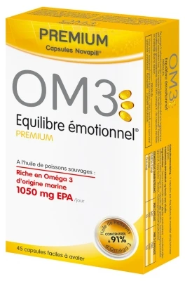 OM3 Premium Emotional Balance 45 Capsules is a food supplement with wild fish oils containing 90% of omega 3 with 1050mg EPA per day.