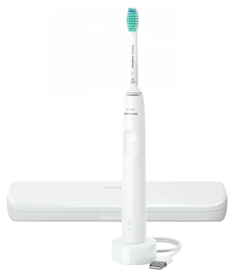 Philips Sonicare 3100 HX3673/13 White Electric Toothbrush + Travel Case is a toothbrush equipped with sonic technology, up to 3 times more effective than a manual toothbrush in removing dental plaque.