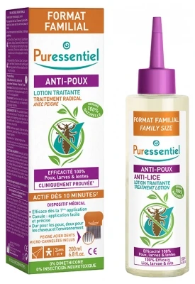 Puressentiel Anti-Lice Treatment Lotion 200ml + Comb is a treatment with 100% natural origin formula which allows to rapidly and effectively eliminate the lice, nits and larvae.