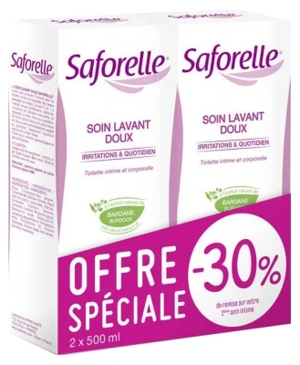 Saforelle Gentle Cleansing Care 2 x 500ml is a care specially formulated for the intimate and bodily cleansing of sensitive and irritated skin. This 2 in 1 care, with natural extract of burdock, calms irritations in times of discomfort and respects the intimate area on a daily basis.