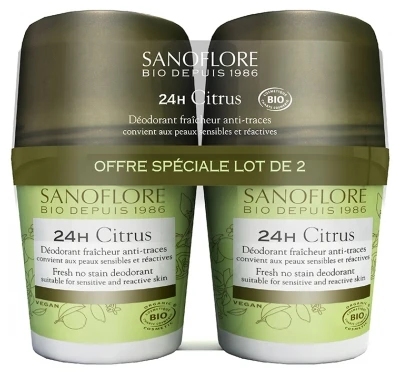 Sanoflore Vent de Citrus 24HR Efficacy Deodorant Roll-on Organic 2 x 50ml is a deodorant with Citrus for all skin types, even sensitive and reactive.