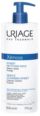 The gel-cream Uriage Xémose Gentle Cleansing Syndet 500ml is a soap-free gel-cream cleanser that soothes and protects very dry, atopy-prone face and body skin. Cerasterol-2F protects and helps restore the skin barrier.