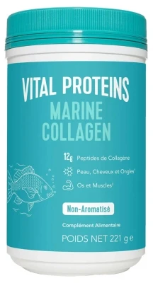 Vital Proteins Marine Collagen 221g is a food supplement in powder, only based on marine collagen. These collagen peptides have a neutral taste, are suitable for mixing in hot or cold liquids and can be taken at any time of the day.